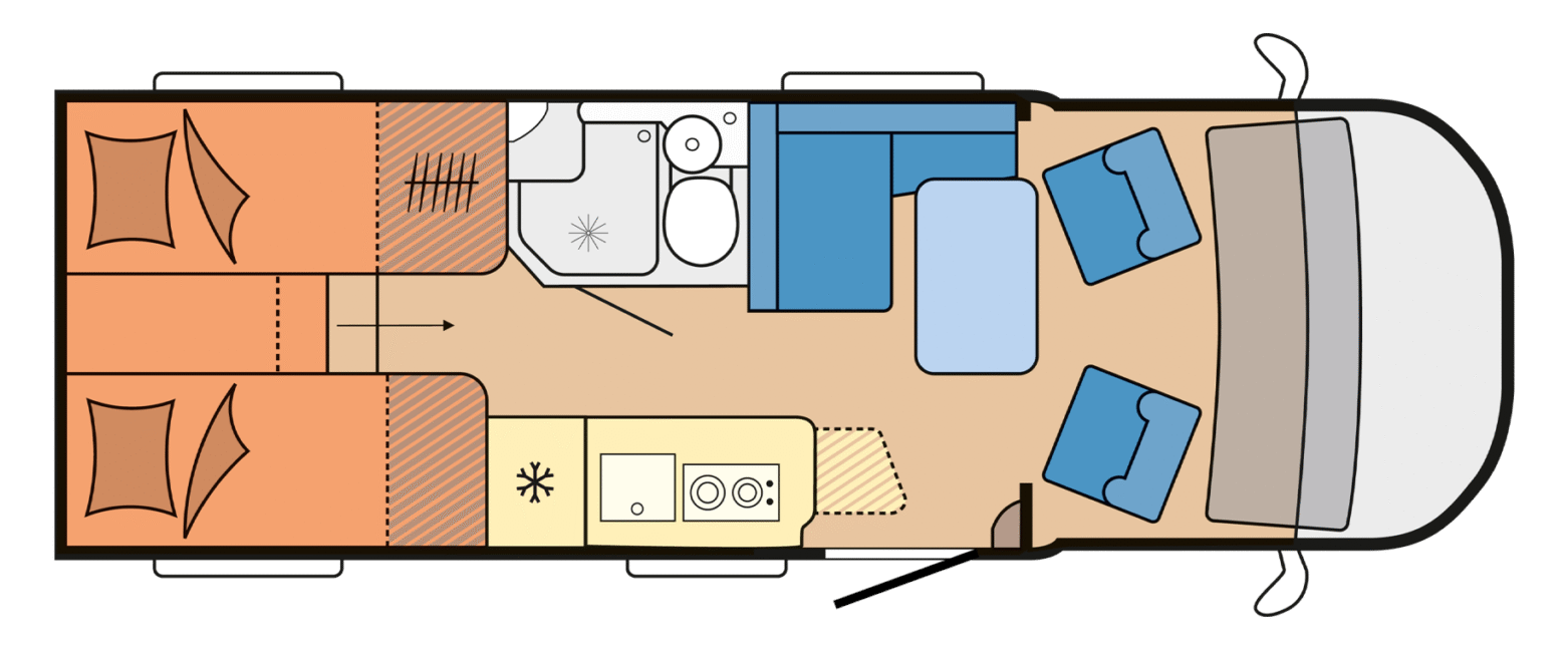 Asientos convertidos en cama: 1.950 x 900 mm (opcional incluido – 402,00 €)