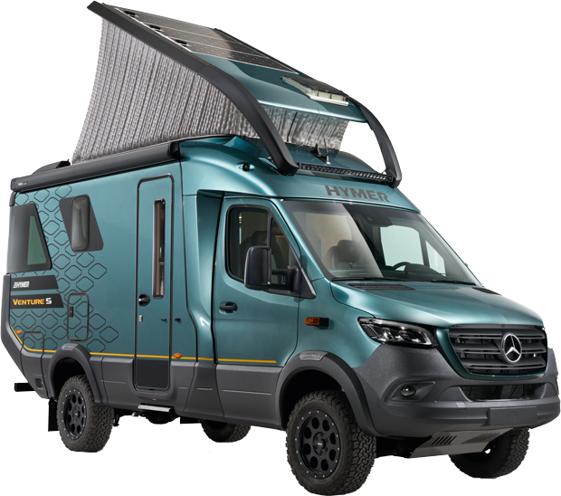 La HYMER Venture S define una nueva categoría de vehículo: una autocaravana innovadora con los más altos estándares de diseño y funcionalidad. Con su llamativo aspecto y su estilizada carrocería, establece nuevos estándares, al tiempo que ofrece un generoso espacio. Como vehículo off-road de equipamiento exclusivo para dos personas, la Venture S promete libertad sin condiciones.