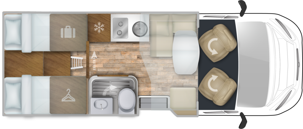 • Cama dinette: 216 x 85 cm