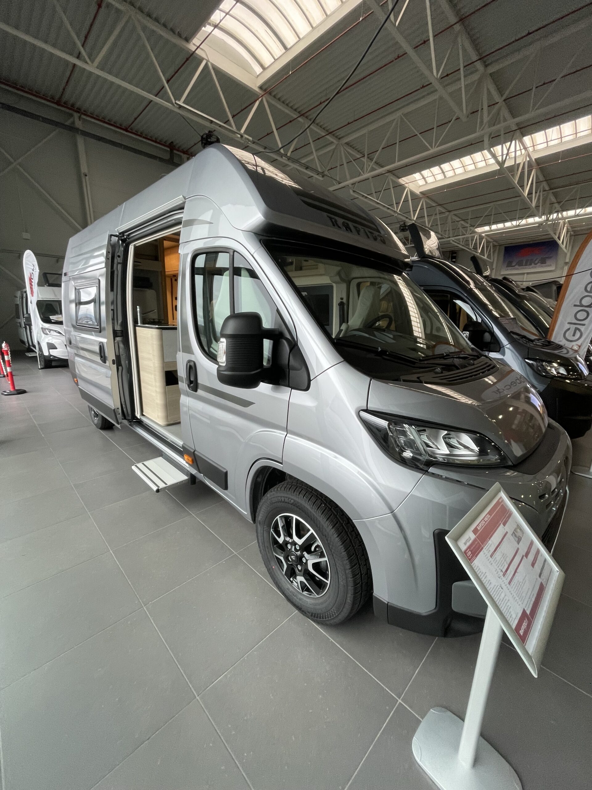 La RAPIDO V65XL és una camper de gamma alta pensada per a aquells que busquen mobilitat, confort i tecnologia en un sol vehicle. Construïda sobre un motor FIAT Ducato de 180 CV amb canvi automàtic, destaca pel seu disseny modern, interiors funcionals i un equipament complet en tecnologia i seguretat. Ideal per viatjar amb estil i comoditat.